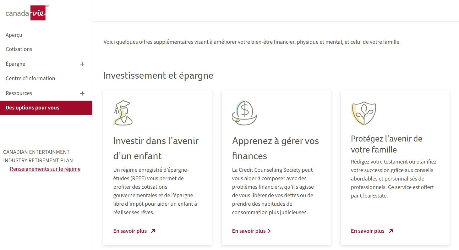 Il suffit d’ouvrir une session dans Ma Canada Vie au travail et cliquer sur « Des options pour vous » puis “Protégez l’avenir de votre famille”.